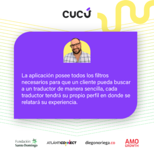 Allí conocí a Daniel Reyes, un emprendedor que se ha hecho a pulso su experiencia desde su viaje a Estados Unidos, donde tuve residencia por 10 años adquiriendo un nivel de inglés alto y que fue su punto de inicio para lo que es hoy Itranslate y Cucú, sus emprendimientos de traducción e interpretación en vivo.
