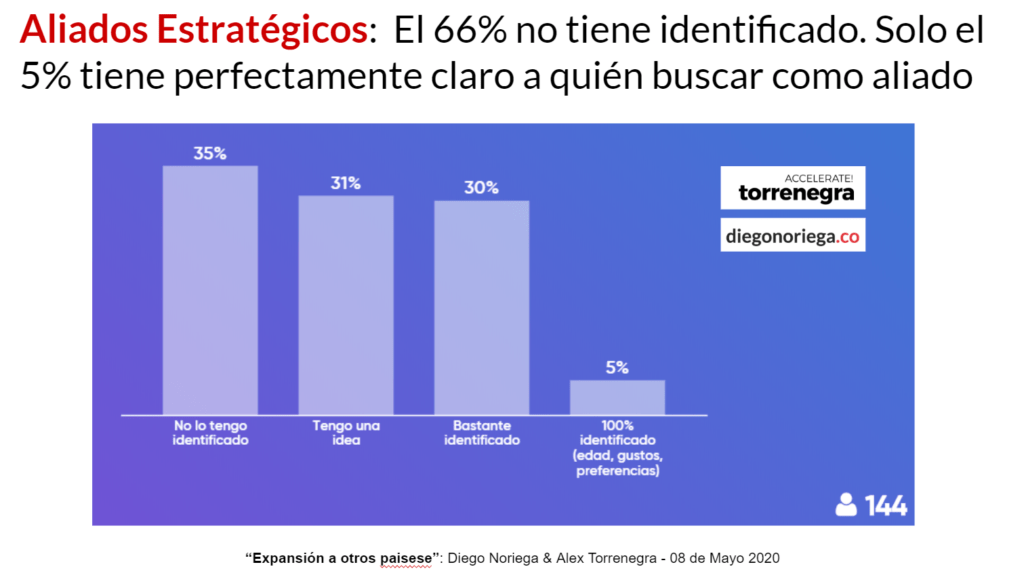 Durante el COtalk que tuvimos con Alex Torrenegra sobre «Expansión a nuevos mercados», encuestamos a 150 emprendedores sobre la estrategia de expansión internacional. Lamentablemente la gran mayoría de los emprendedores no tiene definida esa estrategia. Quiere decir que no estamos lo suficientemente preparados para aprovechar esta oportunidad como nunca en la historia de la humanidad.