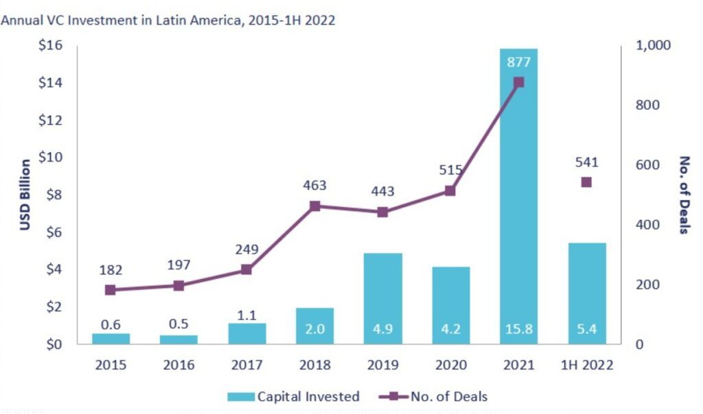 En el año 2021, América Latina fue la región de más rápido crecimiento en el mundo para la inversión de capital de riesgo. Como es público, el contexto ha cambiado este año e inclusive se escuchaban voces de una gran crisis. Sin embargo, la cantidad de inversiones que se han realizado, ya ha superado la mitad de todo el año 2021 (el año outlier) y si todo sigue como hasta ahora, igualaría a fin de año. Seguramente no se llegará al mismo monto invertido, sin embargo, hay que ser optimistas. Sobre viendo las inversiones en estadíos más tempranos.