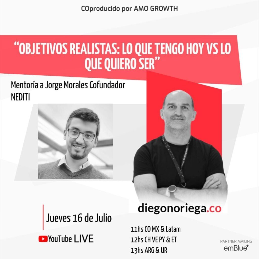 Éste Jueves tuve el placer de tener una mentoría junto a Jorge Morales, cofundador de NEDITI, conversando sobre objetivos realistas y ésta gran brecha entre lo que TENGO hoy y lo que QUIERO.