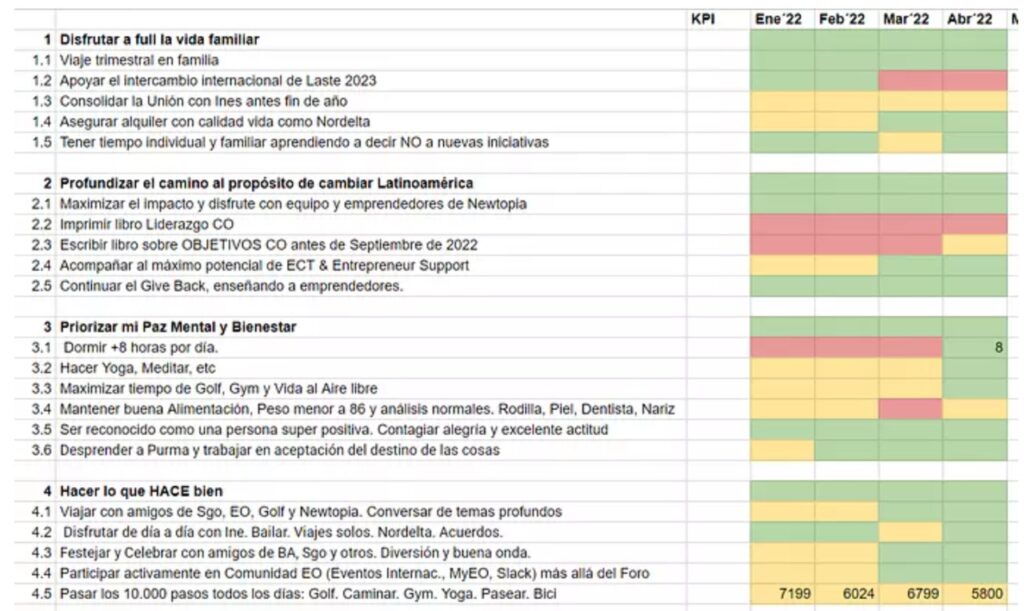 - Más Golf por las tardes. Aquí el objetivo es concreto y tiene el Key Result (KR) de superar los 10.000 pasos diarios