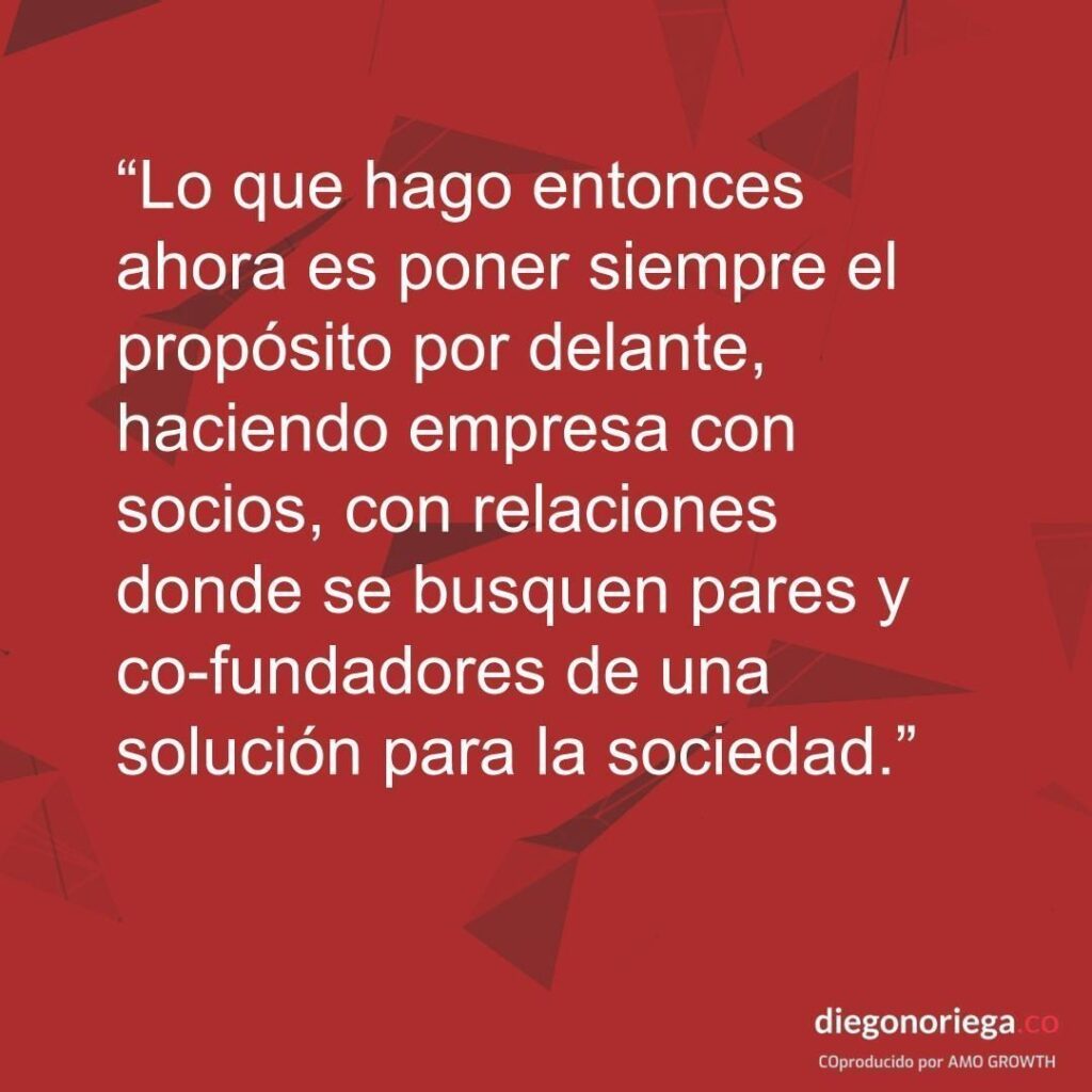 Lo se porque yo he fracasado a nivel personal y profesional, lo que hago entonces ahora es poner siempre el propósito por delante, haciendo empresa con socios, con relaciones, donde se busquen pares y confundadores de una solución para la sociedad del valor que queremos brindar hacia los demás.